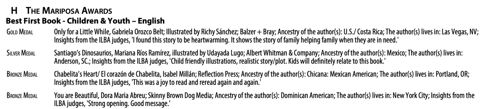 In the following box, you can see which books were the other winners in this category and what the ILBA judges had to say about each one: